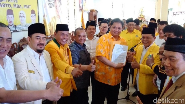 Surat deklarasi dukungan dari DPD I dan DPD II Golkar DIY diterima langsung oleh Airlangga Hartarto yang menghadiri acara doa bersama dan pengajian di Gandung Pardiman Center.