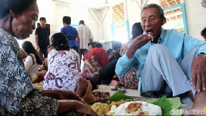 Mereka biasanya duduk di lantai atau lesehan di dalam gereja. Para jemaat sangat menikmati acara makan bersama tersebut.