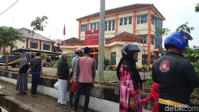 Warga yang berdatangan di lokasi pembunuhan tidak bisa mendekat karena polisi telah memasang garis polisi. Mereka melihat dari belakang garis polisi tersebut. Beberapa anggota polisi juga ada di sekitar lokasi untuk mengamankan lokasi agar warga tidak mendekat. (bgs/bgs)