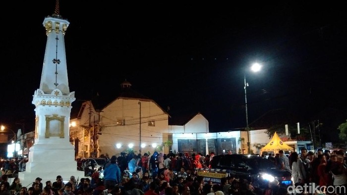 Seperti pantauan terkini, Minggu (31/12/2017) pukul 23.05 WIB, ribuan orang tampak telah memadati kawasan Tugu Yogya. Dari orang tua hingga anak kecil, wisatawan, dan mahasiswa, berjubel dari titik lokasi Tugu berada hingga meluber memenuhi empat ruas jalan di sekitarnya, yakni Jalan Jenderal Soedirman, Jalan Margo Utomo, Jalan P.Diponegoro, dan Jalan Mangkubumi.