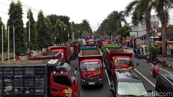 Truk-truk memenuhi badan Jalan Raya Magelang-Yogyakarta. Foto: Pertiwi/detikcom