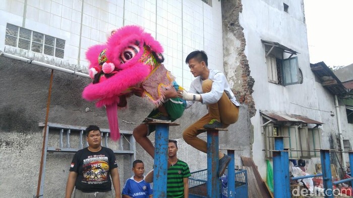 "Ini tadi menceritakan Barongsai menaiki tonggak untuk mengambil umpan di ujung. Kita kalau latihan kendalanya cuma satu, kalau hujan," kata salah satu Atlet, Roni Trisandi (17) dengan nafas terengah karena lelah, Kamis (8/2/2018).