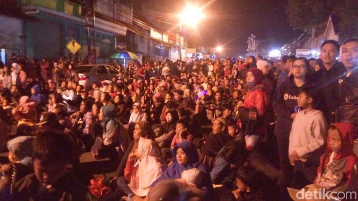 Persis di depan kelenteng didirikan panggung utama, kemudian di pinggir jalan didirikan layar lebar untuk memudahkan warga melihat dari jalan. Semakin larut malam, warga yang datang jumlahnya lebih banyak.