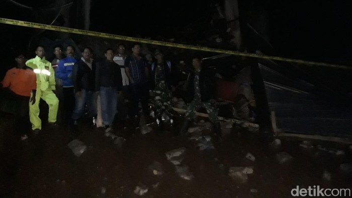 Rumah yang roboh milik Komeng (32) warga RT 4 RW 2 Dusun Rejosari, Desa Prenten. Empat penghuni rumah yang tengah istirahat di dalam rumah, sempat tertimbun material longsoran dan langsung dievakuasi oleh warga.