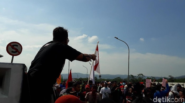 Warga menggelar aksi di atas flyover. (Foto: Imam Suripto/detikcom) |