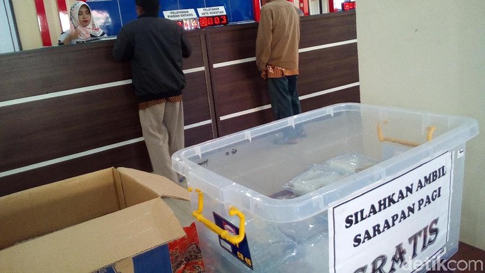 "Kebetulan saya memang belum sarapan dari rumah. Berangkat pagi-pagi. Pas ada sarapan gratis, saya ambil saja," kata Tugiman ditemui sedang antre di kursi tunggu, Jumat (13/4/2018).