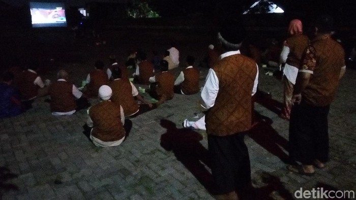 Empat pemain reog dan puluhan pemain pendukung membuat acara nobar semakin meriah. Para pendukung lainnya pun tampak bersemangat bersorak-sorai menyaksikannya.