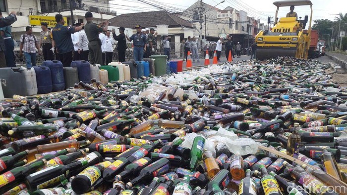 Selain miras, polisi juga memusnahkan petasan dan narkoba. Foto: Arbi Anugrah/detikcom