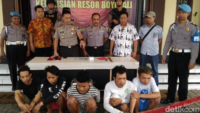 Lima tersangka yang ditahan di Mapolres Boyolali yakni Wahyu Budi Suharto, Bantok Dolano, Avril Nanda Pangestu, Rifki Fajar Yunanto dan Dimas Priya Hutama. Sedangkan Muhammad Dafa Riskulloh, saat ini menjalani proses hukum di Polda DIY.