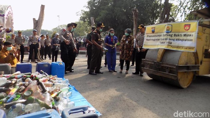Pemusnahan dilakukan dengan cara dilindas oleh alat berat untuk pengaspal jalan. Barang-barang yang dimusnahkan itu merupakan hasil razia selama satu tahun, di antaranya Jumlah miras yang dimusnahkan ada 12 ribu botol, dan 1.000 liter ciu.