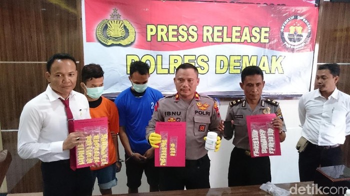 Wakapolres Demak, Kompol Ibnu Bagus Santoso menyampaikan bahwa ketiganya merupakan pengedar. Di tangan tersangka berhasil diamankan obat merek Thryhexphenidhil masing-masing Danu Riza 450 butir, Togog 290 butir dan Fajri 140 butir.