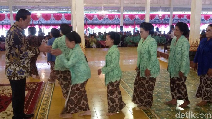 Sri Sultan HB X syawalan dengan abdi dalem. Foto: Edzan Raharjo/detikcom