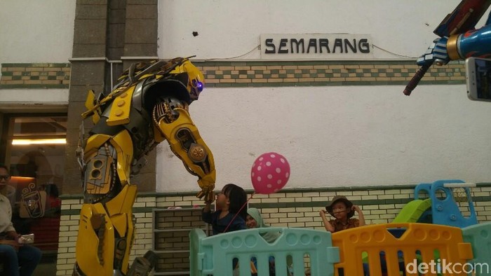 Meski hanya cosplay, tapi dua robot itu membuat anak-anak di Stasiun Tawang gembira. Anak-anak dan orangtuanya bergantian berfoto dan bermain. Balon dan bingkisan berupa buku juga dibagikan kepada mereka.