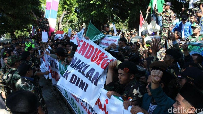 Massa NU menilai ada pembiaran pelanggaran (Foto: Uje Hartono/detikcom) |
