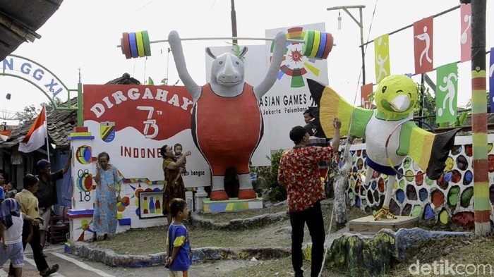 "Ini kami buat dalam rangka HUT RI dan meramaikan Asian Games. Kita buat selama empat belas hari," Muhamad Rozi (33) warga setempat saat ditemui detikcom, Senin (13/8/2018).