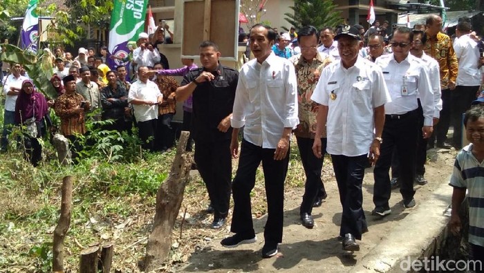 "Mampir ke kegiatan yang berhubungan dengan dana desa, saya ngecek mendadak saja kegiatan pembangunan irigasi di sini," kata Jokowi kepada wartawan seusai meninjau lokasi pembangunan irigasi, Rabu (29/8/2018).