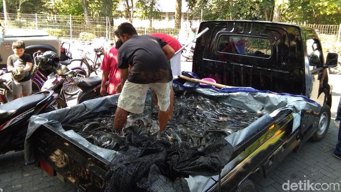 Relawan Jokowi-KH Ma'ruf Amin Untuk Kemuliaan Indonesia (Rejomulia) melepas 10 ton lele dumbo ke Selokan Mataram Yogyakarta untuk acara 'Mancing Geerrsama di Sepanjang Selokan Mataram'.