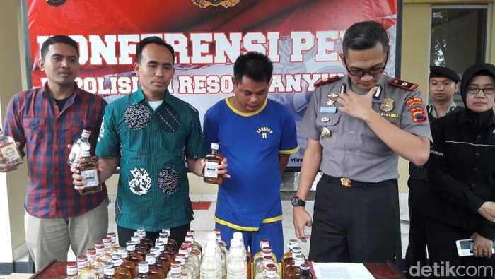 "Ini pemalsuan, jadi keterangan BPOM tidak ada izin edar, tidak ada no cukai. Berkaitan dengan hasil uji labfor ini mengandung metanol 17 persen dan etanol 13 persen. Metanol ini merupakan bahan berbahaya," kata Wakapolres Banyumas, Kompol Heru Budiharto kepada wartawan di Mapolres Banyumas, Rabu (12/9/2018).