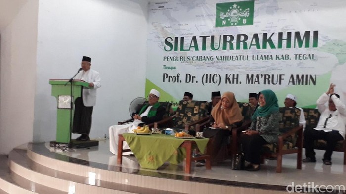 Ma'ruf dan rombongan ini tiba di kantor PCNU Kab Tegal sekitar pukul 14.00 WIB, Selasa (25/9/2018). Meski sudah bukan lagi menjadi pimpinan NU, namun Ma'ruf Amin yakin warga NU tetap akan mendukungnya dalam pilpres.