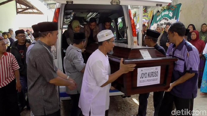 Setelah disemayamkan dan di salatkan, jenazah Joyo Nuroso, diantarkan ke tempat peristirahatanya terakhir di Tempat Pemakaman Umum Jetak Kidul pada pukul 12.45 wib. (sip/sip)