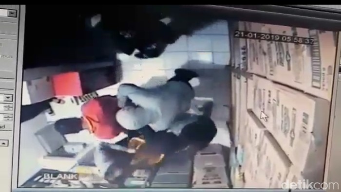 Para pelaku berhasil menggondol uang sebesar Rp 40 juta. Kejadian yang terekam kamera CCTV tersebut kini masih dalam proses penyelidikan polisi.