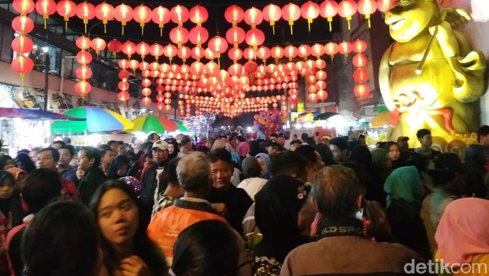 Mereka juga datang untuk menyaksikan berbagai hiburan, seperti barongsai, liong dan pertunjukan musik. Berbagai stan kuliner turut meramaikan malam Imlek.
