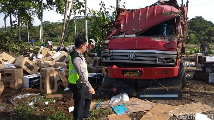 Sopir truk tersebut Triyo Darsono (42), mengalami luka-luka. Namun, muatan ratusan unit barang elektronik sebagian besar tumpah berserakan.