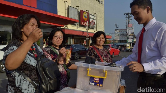 "Iya karena mamas inilah dengan berdasi keliatan rapi kita penasaran dan mencicipi barang dagangannya," kata Ny Fajar pengunjung Kota Pekalongan asal Kota Medan.