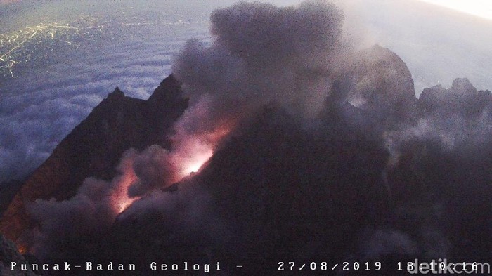 "Awanpanas guguran Gunung #Merapi terjadi pada tanggal 27 Agustus 2019 pukul 18:09 WIB. Awanpanas guguran tercatat di seismogram dengan amplitudo max. 70 mm dan durasi Β±198.90 detik," jelas BPPTKG.