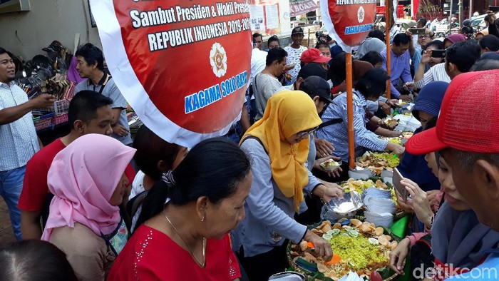 Acara tersebut diinisiasi oleh Keluarga Alumni Universitas Gajah Mada (Kagama) Solo, Kamis (17/10/2019). Mereka menyiapkan tujuh tumpeng nasi kuning untuk dibagikan kepada pedagang, sopir becak dan pengunjung Pasar Gede.