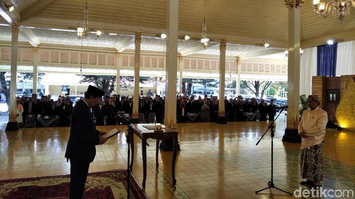 "Pak Bambang (Plt Disdikpora DIY). Iya (Bambang Wisnu)," terang Sultan HB X seusai pelantikan. (ush/sip)