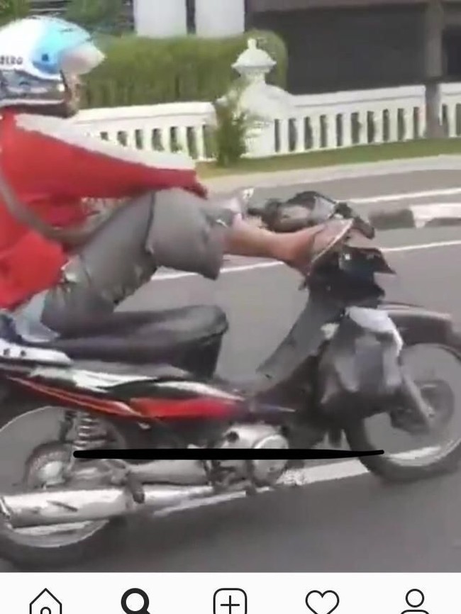 Bukan mengendalikan setang motor dengan tangan, FM justru pakai kedua kakinya. Banyak netizen yang mengecam aksi FM karena membahayakan pengendara lainnya.