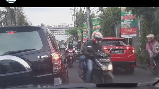 Dalam video tersebut terlihat bahwa mobil berwarna merah berpelat AD itu menggunakan lajur kanan. Diduga sang sopir mobil warna merah itu nekat menyerobot lajur kanan lantaran di lajur kiri antrean mobil cukup panjang.