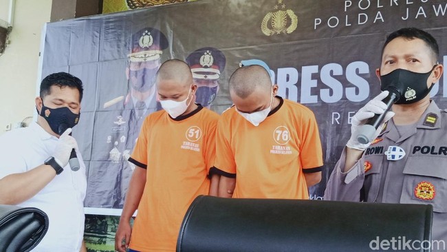 Saat dihadirkan dalam konferensi pers di Mapolres Klaten Jalan Diponegoro, Kamis (3/6/2021) siang, keduanya tampak menundukkan wajah.
