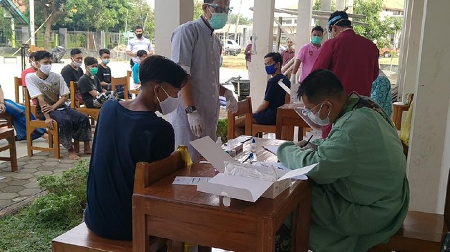 Petugas kembali melakukan tes swab antigen terhadap 400 santri siang ini. Hasilnya ditemukan ada 38 santri yang reaktif Corona.