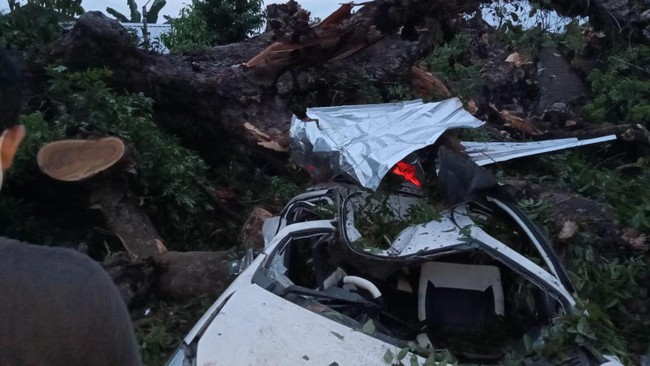 Akibat kejadian itu, mobil warna putih itu pun ringsek berat. Korban yang mengalami luka serius dan meninggal dunia di lokasi kejadian.
