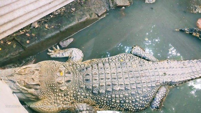 "Posisi buaya ada di belakang rumah, ada semacam kolam dengan pembatas begitu. Prosesnya tidak lama, petugas memasangkan tali di bagian mulut buaya kemudian buaya ditarik ke atas," urai Widarto.