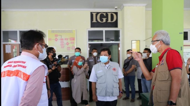"Sebenarnya sudah bagus, IGD yang awalnya hanya 15 tempat tidur, ditambah sampai 50 dan sampai selasar digunakan untuk pasien COVID-19. Tapi saya minta, sisi kenyamanan juga dikelola agar pasien nyaman. Saya minta Pak Wakil Bupati juga menyiapkan rumah sakit lain agar bisa jadi alternatif, sehingga manajemen pasien yang masuk bisa lebih baik," kata Ganjar.