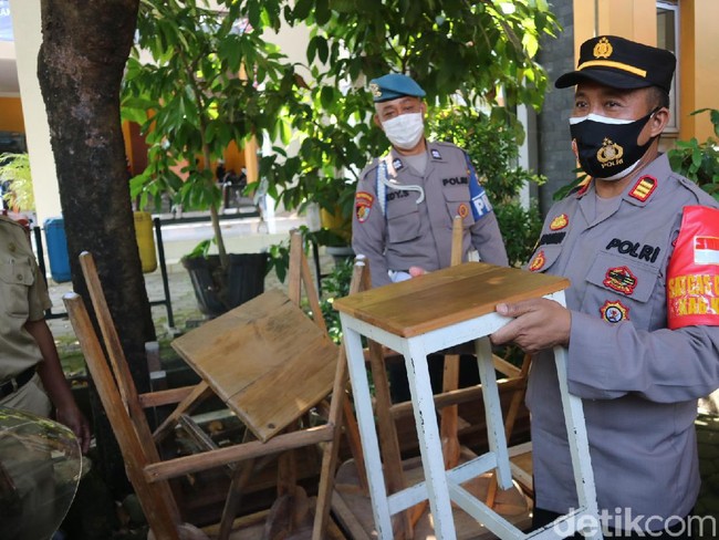 "Sejak awal ada empat warung yang kursinya kita sita. Ini sudah ada dua kursi pemilik warung yang sudah diambil pemiliknya," sambung Ngatmin.