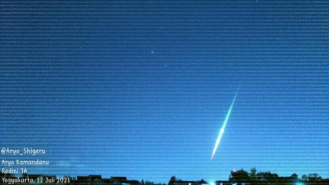 Malam ini sekitar 21.36 WIB, sebagian warga Jogja dikejutkan dengan kilatan cahaya berwarna hijau di langit. Kami menduga cahaya tersebut adalah fireball yang melintas. Beruntung cahaya terang tersebut sempat terdokumentasi oleh aryo.akise," tulis akun @merapi_uncover.