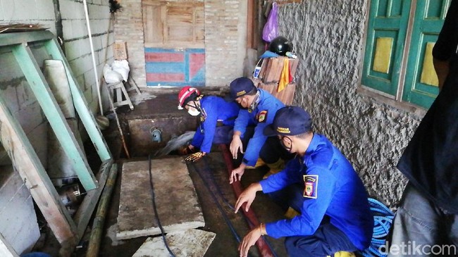 Setelah masuk ke septic tank sapi tidak bisa keluar dan akhirnya warga berinisiatif memanggil tim pemadam kebakaran dan tim SAR.