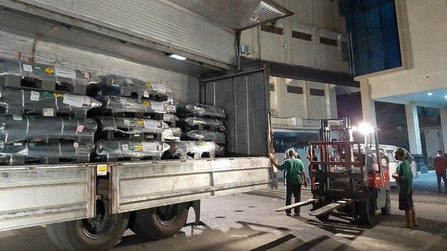 "Hari ini ada 14 ton lagi, Tadi ada keterlambatan pesawat, karena mendarat di Batam dulu jadi agak mundur," kata dia.