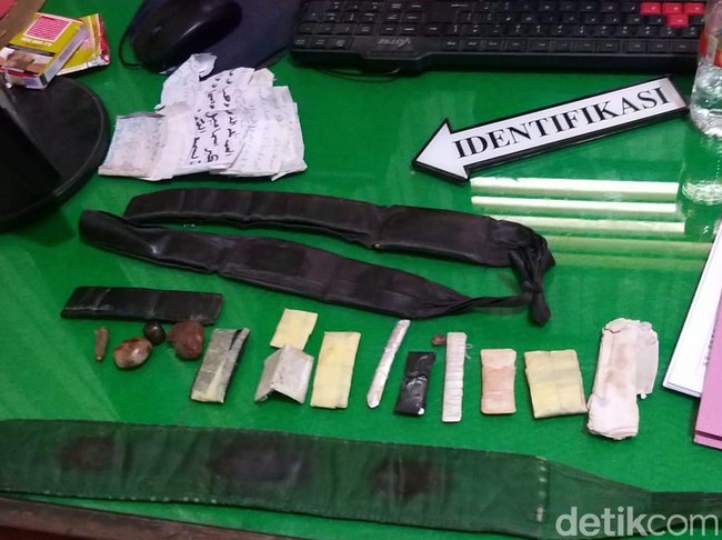 "Puluhan jimat sudah kita amankan, bentuknya macam-macam ada yang berbentuk besi, kain yang diikatkan di perut, sabuk, rajah dan masih banyak," ungkapnya.