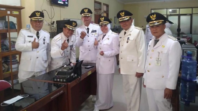 Dalam foto yang beredar itu, tampak belasan camat yang memakai seragam putih dengan topi hitam berlambang burung garuda tengah berkumpul tanpa memakai masker. Lalu di foto berikutnya tampak salah seorang camat wanita tampak bernyanyi.