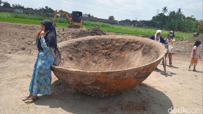 "Lokasinya di tengah sawah dan ketemunya di kedalaman sekitar 4 meter. Penemuannya kemarin sore dan sekitar jam 5 sore (17.00 WIB) wajan itu baru bisa dievakuasi," kata Lurah Jambidan Zubaidi saat dihubungi wartawan, Rabu (1/9/2021).