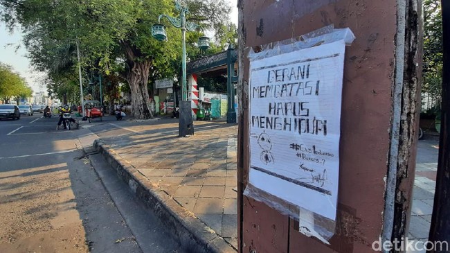 Namun hingga siang ini, terpantau poster-poster itu masih tertempel di tempatmya. Beberapa di antaranya berada di kawasan Ngarsopuro dan Koridor Gatot Subroto.