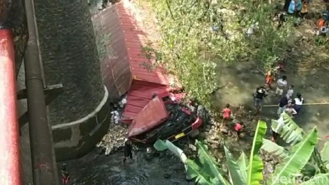 "Truk limbung dan menabrak pembatas jembatan terus masuk jurang. Truk dari utara muat minuman kemasan," ujar Sukadi di lokasi.