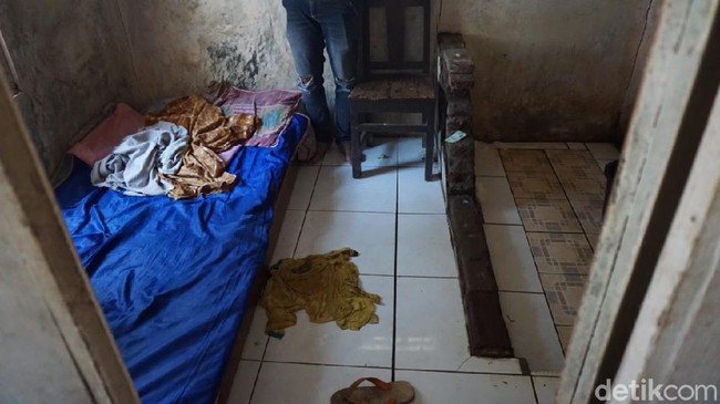Di dalam kamar sederhana tersebut dibagi menjadi dua bagian dengan batas tembok pendek tinggi sekitar 50 sentimeter. Sebagian digunakan untuk tempat tidur, sebagian lagi terdapat keran air.