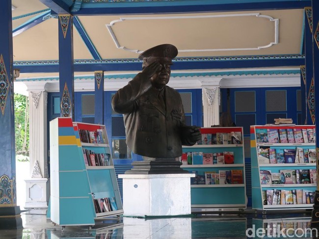 Pantauan detikcom, patung berukuran besar itu ternyata berada di Museum Memorial Jenderal Besar HM Soeharto di Pedukuhan Kemusuk, Kalurahan Argomulyo, Kapanewon Sedayu, Kabupaten Bantul. Tampak patung tersebut berada di halaman depan museum.
