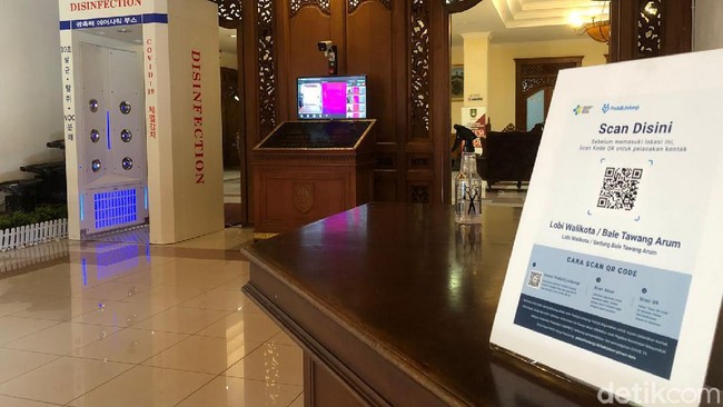 Salah satunya di Balai Kota Solo yang baru saja memulai penggunaan PeduliLindungi untuk gedung kantor wali kota. Gibran menyebut masih banyak pengunjung yang tidak memindai barcode yang disediakan.
